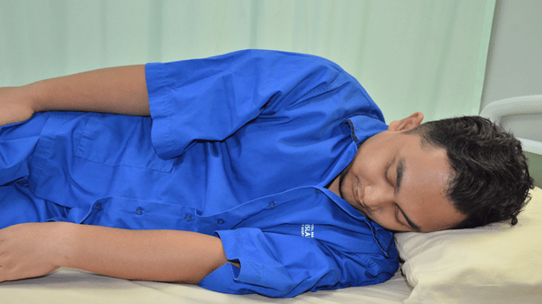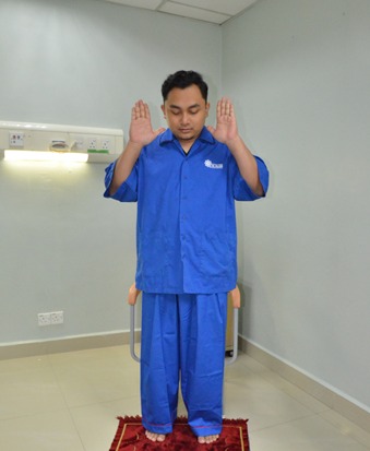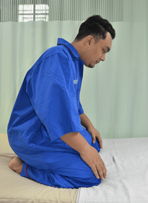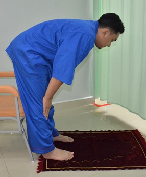 Rukuk dengan menundukkan sedikit kepala dengan bantuan tangan