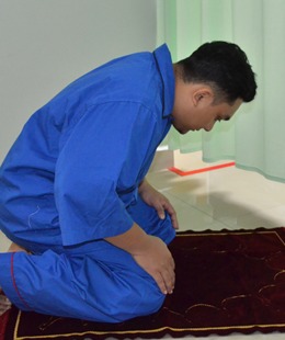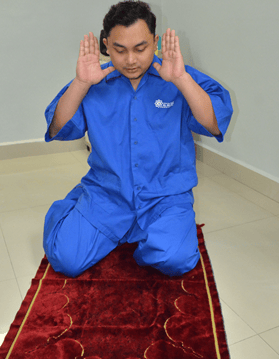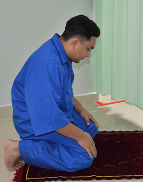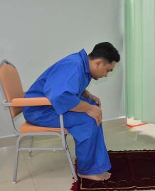 Sujud dengan cara duduk dan menunundukkan badan mengikut kemampuan